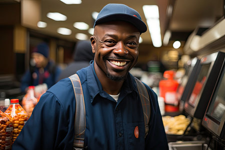 A smiling male delivery worker in front of his van. Transport. Generative Ai