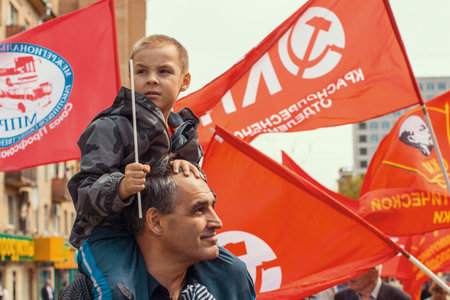 MOSCOW - MAY 1: Unidentified communist party supporters take part in a rally marking the May Day, May 1, 2013 in Moscow, Russia.