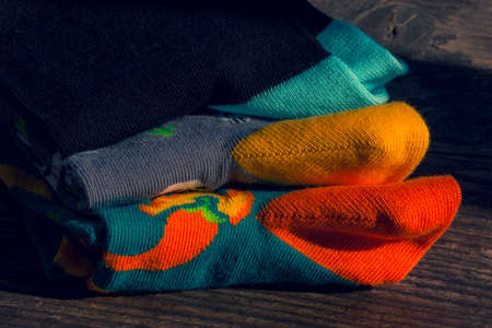 Socks colorful. Set of socks. On wood background. Hey Lesia,