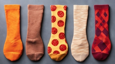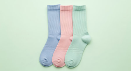 a vibrant set of socks against a clean white background, perfect for a trendy banner design showing fashion and comfort.