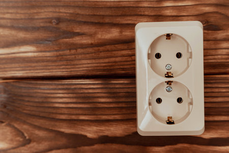 Dual power socket connecting electrical appliances at home energy on the wall.