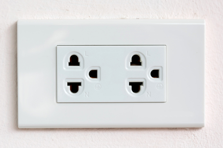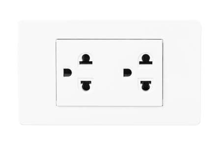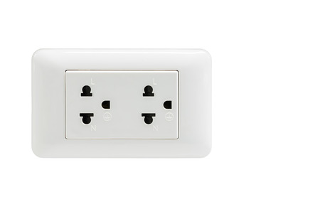White double socket on white background.Electric plug. European high voltage 220W sockets.High resolution photo