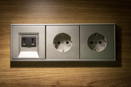 Modern sockets in the wall. Multifunctional socket with internet connection. European sockets.