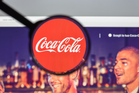 Milan, Italy - August 10, 2017: Coca cola website homepage. It is is a carbonated soft drink produced by The Coca-Cola Company. Cola logo visible.