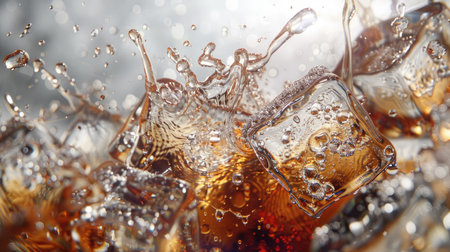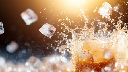 A stunning image of a refreshing drink splashing with ice cubes, capturing the essence of coolness and vitality. Perfect for summer themes.