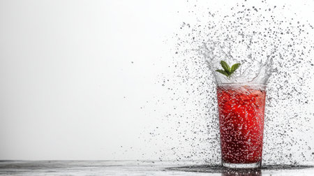 A vivid splash of a red cocktail with mint leaves creates an energetic scene, perfect for summer events and celebrations.