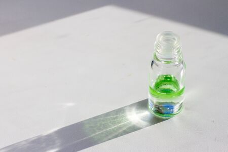 Color water glassware, reagents in the laboratory equipment, light and shadows