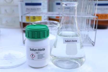 Sodium chloride in bottle , chemical in the laboratory and industry, Chemicals used in the analysis
