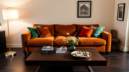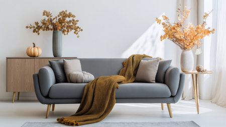Chic autumn living area with warm colors, AI