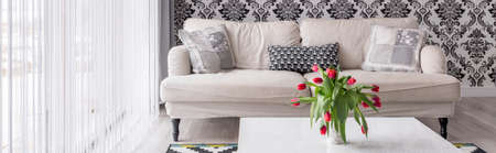 White sofa and table in stylish modern living room