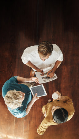 Brainstorming the potential to further their profits. High angle shot of a group of businesspeople brainstorming together in an office.