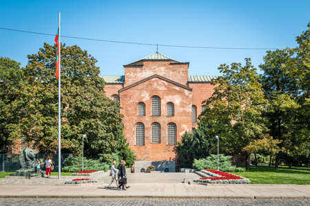 Sofia, Bulgaria - September 15, 2016: People are walking near the Basilica Sveta Sofia in Bulgaria