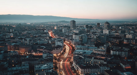 Evening sunset over Sofia city, Bulgaria
