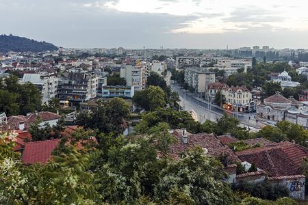 Amazing Sunset panrama of Plovdiv city from Nebet Tepe hill, Bulgaria