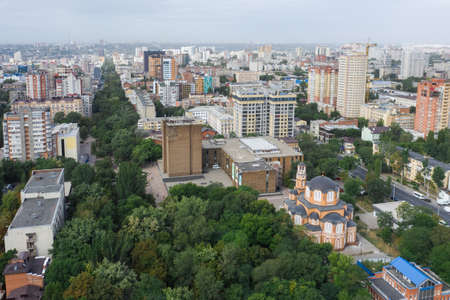 Panorama of the city of Rostov on Don, Pushkinskaya street, residential areas and the public library, aerial view
