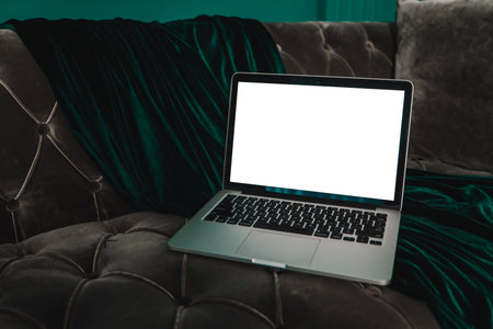 computer screen mockup.hand woman work using laptop with white background for advertising. marketing and creative design.
