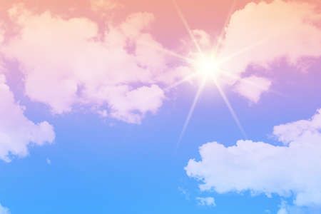 Blue sky with white clouds and sun. 3d rendering illustration.