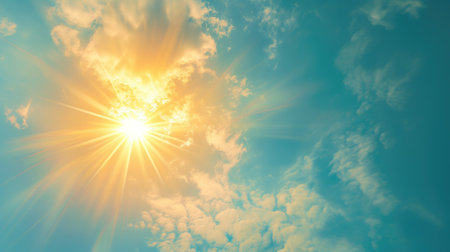 A bright and radiant blue sky with sunbeams and lens flares, capturing the beauty of a sunny day with a sense of warmth and vibrancy, evoking feelings of happiness and joy. Clear details and vibrant colors enhance visual appeal.
