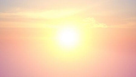The image showcases a bright sun shining against a warm yellow sky, creating a calming and serene environment perfect for conveying peace and tranquility.