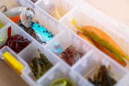 Concept summer fishing for spinning. Gear for catching fish wobblers in the form of fish