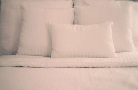 Close-up of white soft pillows on the bed in the room