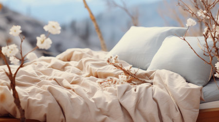 The bedding looks naturally messy and wrinkled to enhance the feeling of coziness and comfort. generative ai