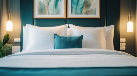 Elegant Bedroom Interior with Luxurious Pillows and Soft Lighting Creates a Serene Ambiance
