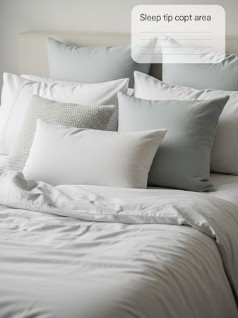 A serene and cozy bedding setup featuring a pillow and soft blankets on a stylish bed frame, offering a minimalist and inviting atmosphere for relaxation.