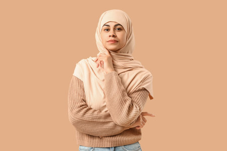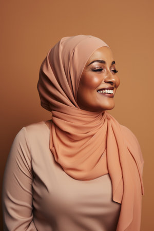 Muslim African-American woman on beige background