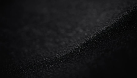 Blurred closeup of black fabric showing intricate folds and a subtle sheen, emphasizing the refined and luxurious qualities of the material.