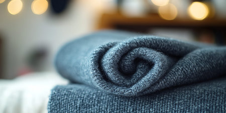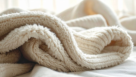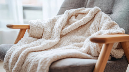 A Comforting Textured Fabric for Relaxation and Self-Care at Home. Concept Cozy Blankets, Plush Pillows, Soft Throws, Luxurious Robes