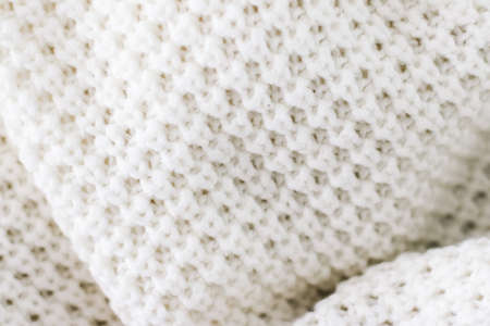 Knitwear, fabric textures and handmade items concept - Warm knitted clothes, soft and white