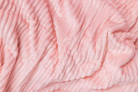 New soft pink fabric. Abstract texture background with waves and lines. Top view, closeup