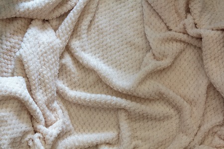 Fluffy blanket with wrinkles. Texture background pattern