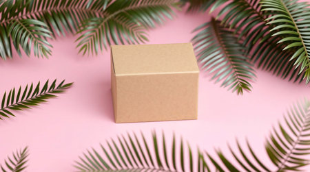 Closed brown kraft cardboard box with tape, showcasing simple and clean design. box is positioned to create soft shadow, evoking sense of minimalism and functionality