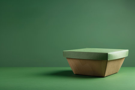 Eco friendly biodegradable takeaway container on a green background for sustainable packaging solutions.