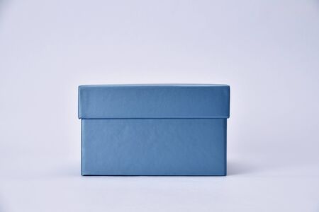 Box on blue background, close-up, mockup packaging