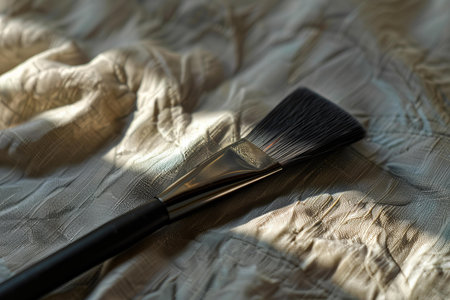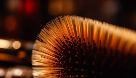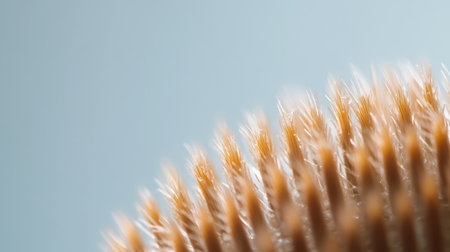 A detailed view showcasing the texture and arrangement of bristles on a soft brush highlighting their fine structure in clear light.