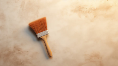 Old paintbrush with wooden handle, close-up view. Artistic tool concept