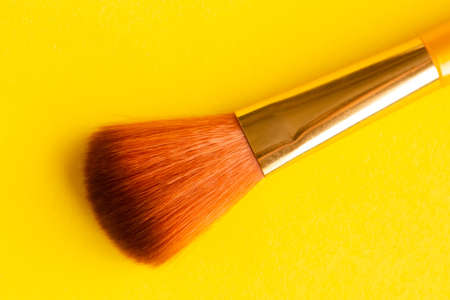 Makeup cosmetic brush isolated on bright yellow background. Minimal concept