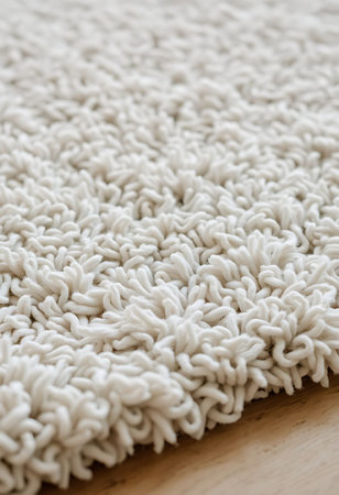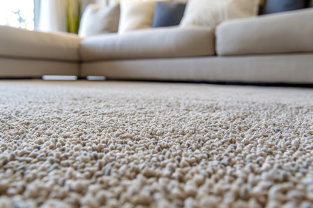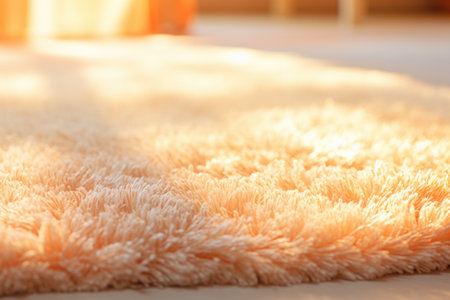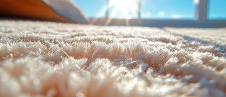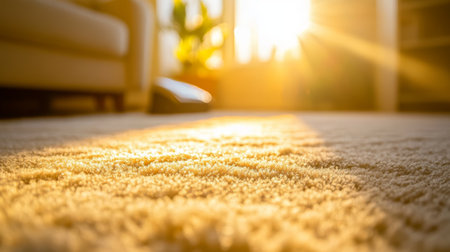 Soft texture of thin pile carpet under natural sunlight in a cozy room
