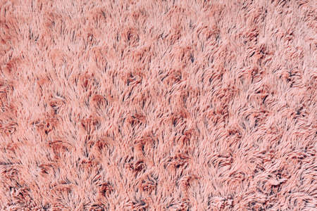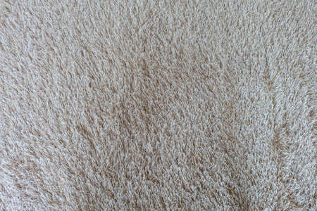 close-up beige Interior pile carpet made of polypropylene. Long fibers form a high pile. pleasant lint texture, softness and hypoallergenicity.