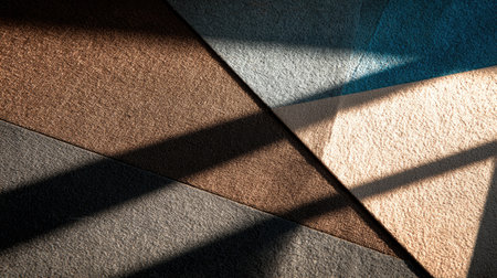 A captivating background featuring colorful geometric patterns on a carpet, enhanced by soft light and deep shadows. Ideal for interior design concepts.
