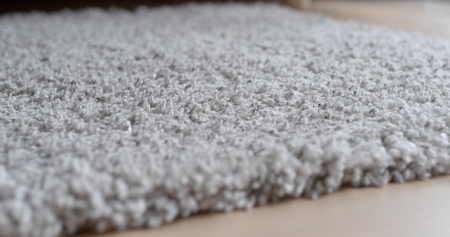 Soft fluffy carpet on floor, closeup. Space for text. Interior design