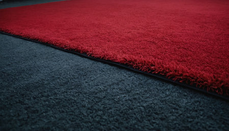 Closeup of luxurious red carpet with a velvety smooth texture. Concept Luxurious Red Carpet, Closeup Shot, Smooth Velvet Texture