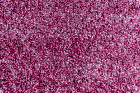 Textured background Close up of pink homemade knitted fabric with large stitches.