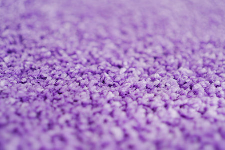close-up violet Interior pile carpet made of polypropylene. Long fibers form a high pile. pleasant lint texture, softness and hypoallergenicity.