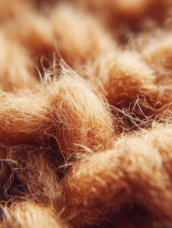 A closeup view of a soft, textured blanket in warm tones, showcasing its inviting fibers. Perfect for home decor projects, comfort items, and lifestyle photography.