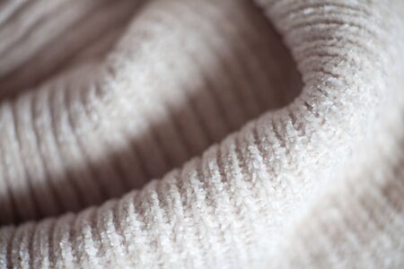 Wool fabric texture close up background. Cozy style cloth. Wavy folds material