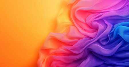 A Soft, flowing fabric in vibrant gradient colors of orange, pink, and blue creates dreamy, abstract background. Perfect for minimalist design and artistic projects